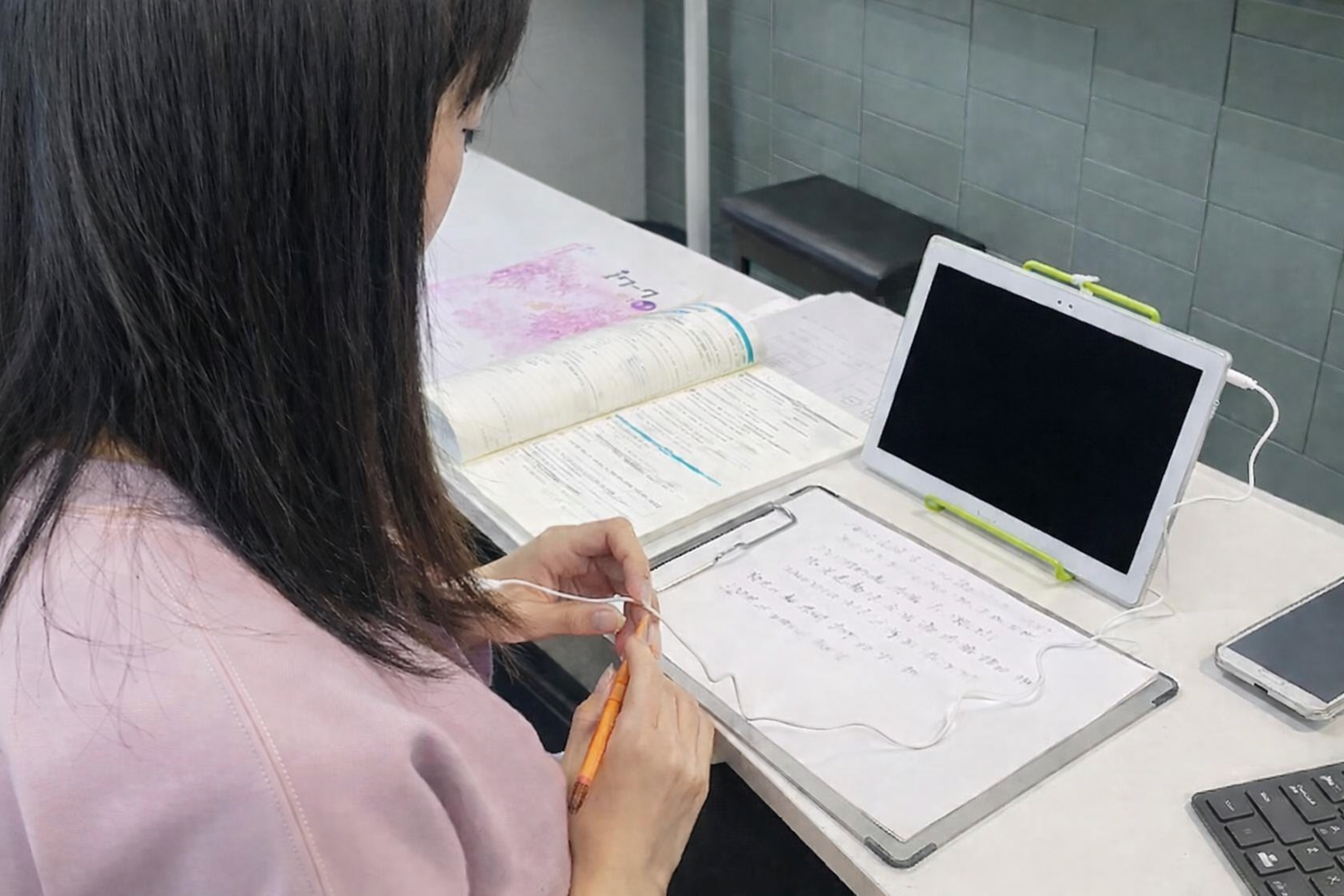 講師はカメラと手元の画面を共有しながら、板書と解説を行います。